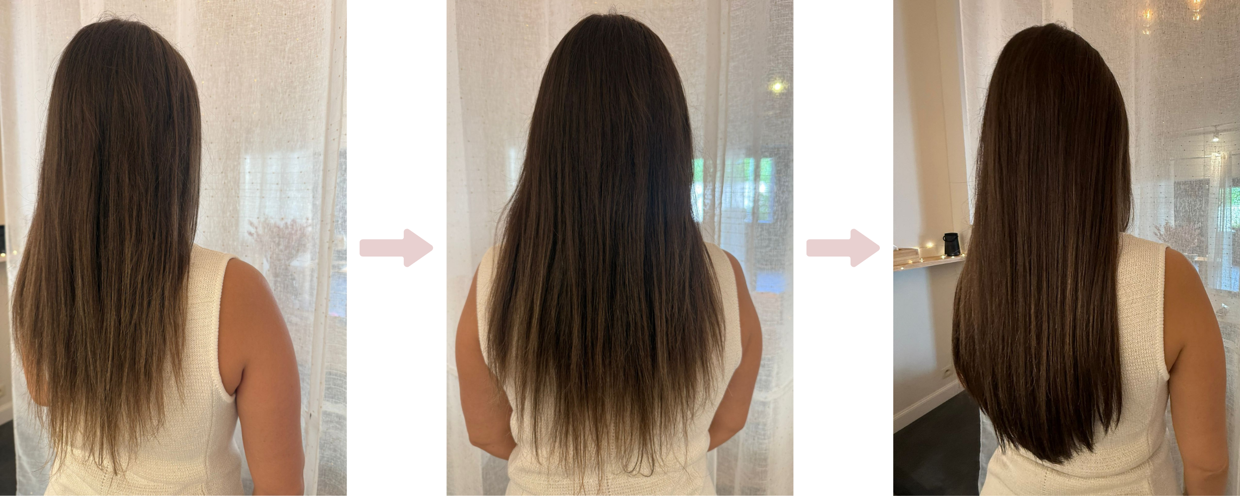 Une première pour moi.. après 32 ans de cheveux naturels mais surtout après 2 grossesses qui ont dévitalisé mes cheveux, j’ai fait confiance à Katerina et je ne le regrette pas. Travail soigné et professionnel avec la qualité la meilleure du marché. J’ai perdu espoir de retrouver la masse de cheveux de ma jeunesse que j’ai retrouvé grâce à ses doigts de fée. On ne voit absolument pas les points de kératine et on ne les sent pas. Merci pour ce joli travail car je ne voulais pas gagner de la longueur mais de la densité.